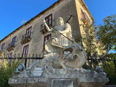 La rappresentazione scultorea di San Giorgio e il drago spicca nel contesto suggestivo della piazza omonima dove si affacciano i Palazzi Storici e Chiesa Matrice. Poggia su una fontana preesistente realizzata da maestranze locali. Il martire...